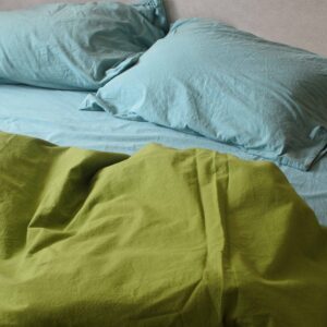 – تکه ها: دو عدد روبالشتی کرم، کاور لحاف آبی کدر و روتشکی کشدار کهربایی